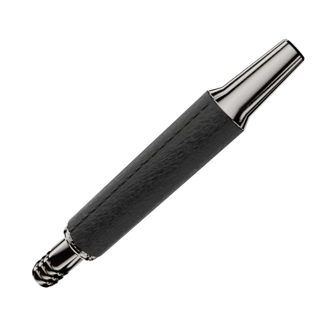 The grip section is wrapped in a leather-textured covering, providing a pleasant tactile feel and a secure hold during use. This material not only enhances comfort but also adds a distinctive, understated visual character to the mouthpiece.