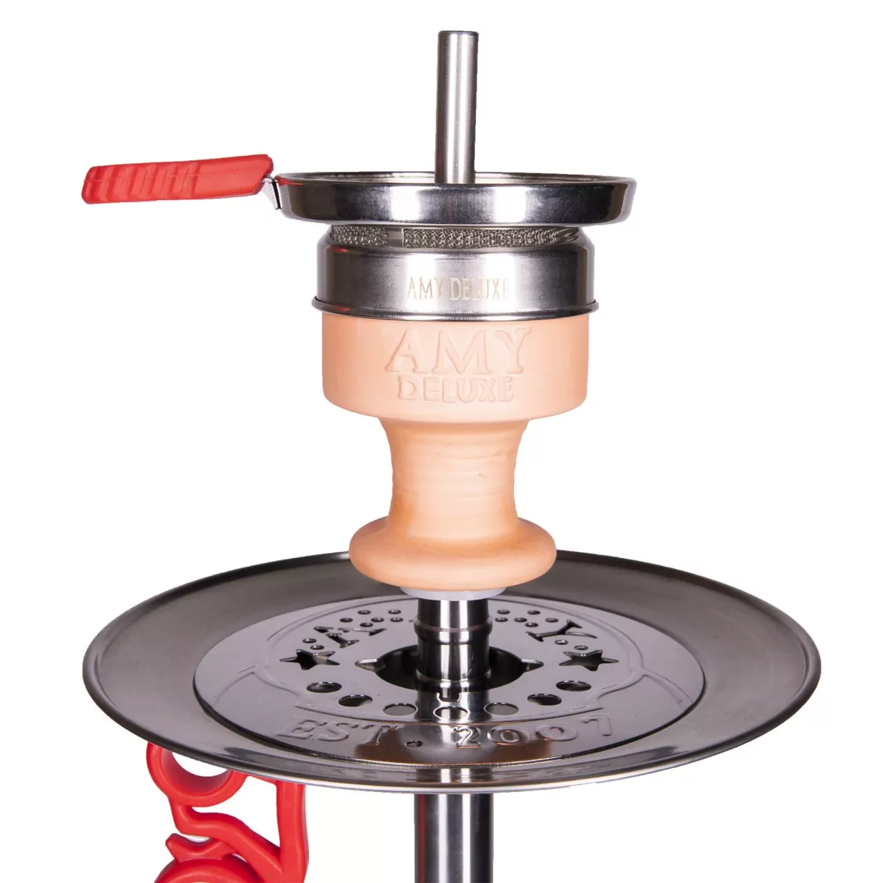 The Hookah Amy SS13 R, made in Germany, combines modern design, reliability, and excellent quality. The striking red color makes it a perfect choice for both beginners and experienced users. The Amy SS13 R stands out with its stylish appearance and bright red hue. The stainless steel stem is durable and resistant to rust, ensuring long-term use. The material is easy to clean, making maintenance simple and convenient.